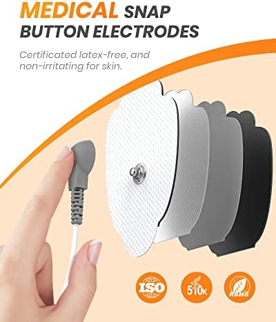 What You Get: Total 12 Medical Snap Button Electrodes, includes 4pcs 2” x 4” rectangular pads, 4pcs 2” x 3” palm-shaped pads, 4pcs 1” x 2” oval pads. And we promise you a 12-Month Warranty, Premium Customer Service, and hassle-free shopping.