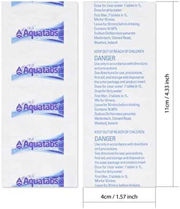DRINKING WATER, ANYTIME, ANYWHERE – Aquatabs are the world’s most popular tablet and the ultimate choice for portable water treatment tablets. Removes 99.9999% of Bacteria, 99.99% of Viruses, and 99.9% of Cysts (Giardia). French/English packaging and instructions of use.