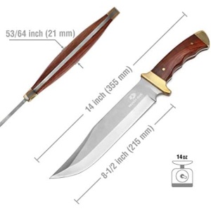 MOSSY OAK 14-inch Bowie Knife, Full-tang Fixed Blade Wood Handle
