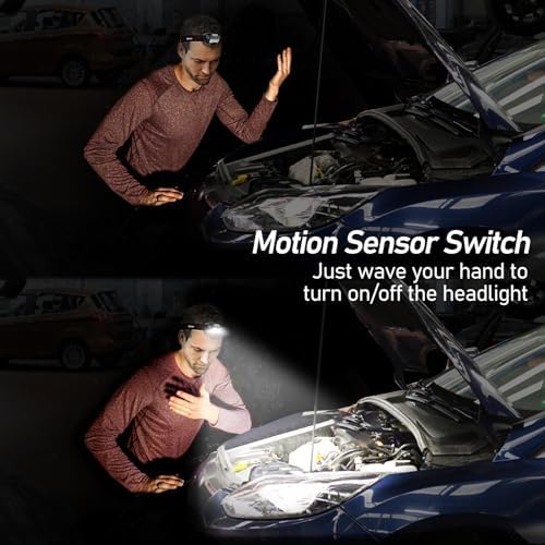 6 Lighting modes & Free Your Hands: 4 Conventional lighting modes: strong white / weak white / strong red / strobe red. 2 induction modes: strong white / strong red. Thanks to built-in motion sensor design, easy freeing your hands in this mode, simply wave your hand in front of the headlight to turn it on / off.