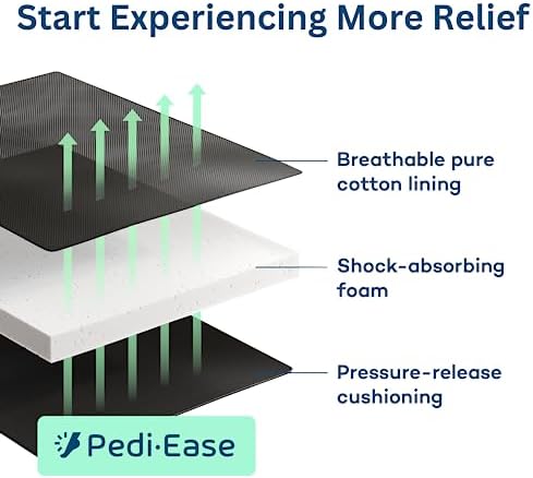 Help to Alleviate Bunion Pain: Our Pedi-Ease 3-layer cushioning can help provide users with more comfort, instant and ongoing relief for bunion pain, arthritis, and post-surgery discomfort. The ergonomically designed bunion corrector shape can help reduce friction and absorb pressure—unlike some other bunion splints, which can increase tenderness.