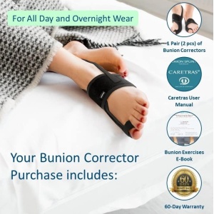 Satisfaction Guarantee: At Caretras, our goal is to help provide support, delivery (same day if possible), and relief. There is a full purchase price refund within 30 days of your purchase and a 60 day full replacement warranty on your Bunion splints for any manufacturing defect. Purchase your bunion corrector with confidence!