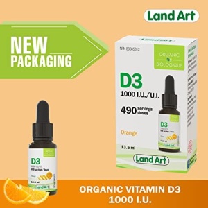 In Canada, it is impossible to get enough vitamin D from sunlight. The Organic Vitamin D3 from Land Art is recommended to address this potential deficiency. It is particularly recommended during the winter months for the entire population and year-round for people over the age of 50.