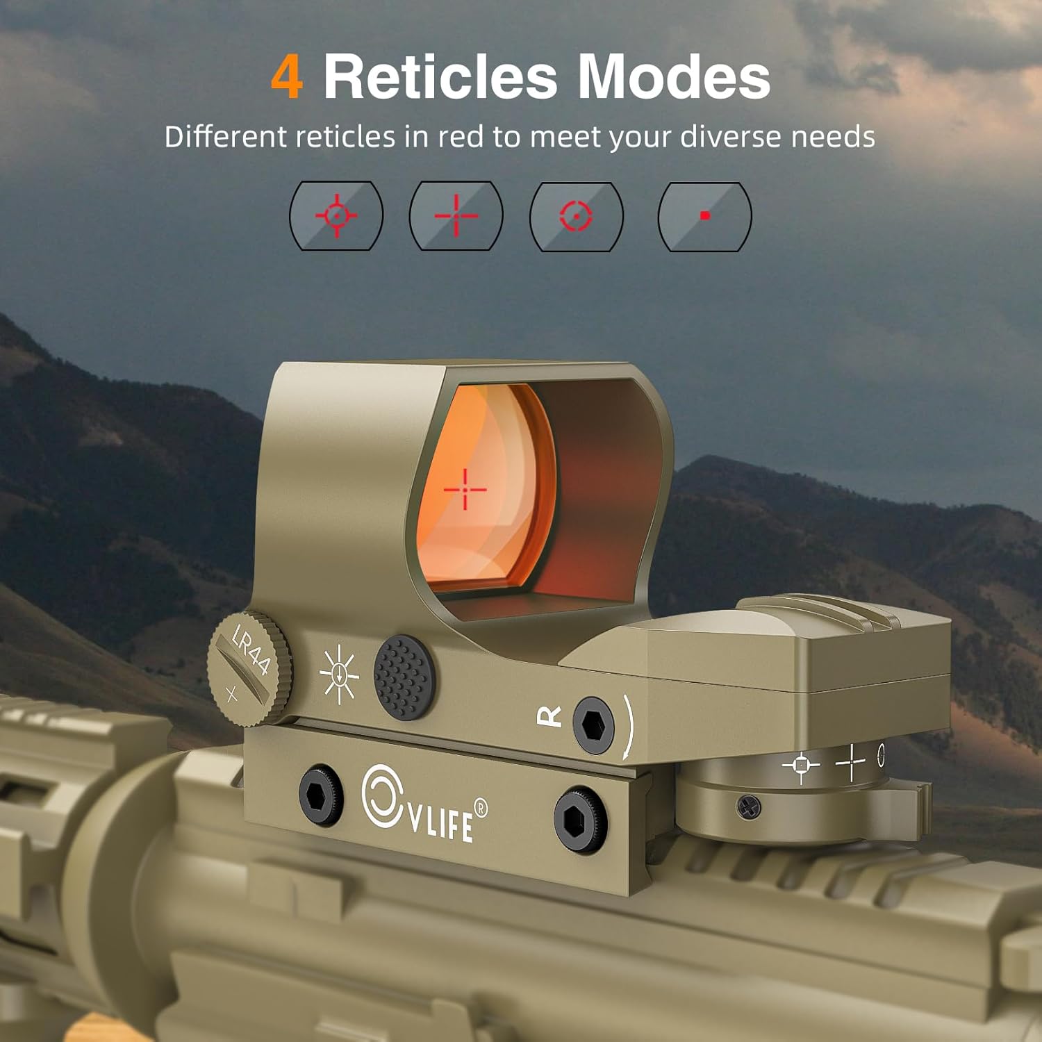 CVLIFE Reflex Sight, 1x28x40mm Red Dot Sight, 4 Adjustable Reticles Sight for 20mm