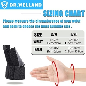 Easy to UseIt is universal and adjustable. Ergonomic design allows you to wear and take off it easily. It fits for both left and right hands. Really versatile and useful.We suggest that the thumb brace can be cleaned lightly by a brush or wet cloth in neutral detergent at a temperature under 30 Degree Celsius. Machine wash and handwash are forbidden. It cannot be dug into water for longer service time of glue.