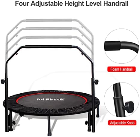Adjustable and Comfortable Handle – There are four different levels of handrail height(29.9’’/32.6’’/35.8’’/39’’) available to adjust for adults and kids, ensure you have a good jumping experience. The handle is covered by the foam material, very comfortable for you to grip and prevent accidentally fall down.
