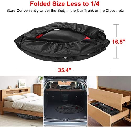 Folding&Portable – Unique design allows you to fold the jump trampoline twice while wearing the safety pad, and it will save you much storage space and easy to carry, you can store conveniently under the bed, in the closet, or take this trampoline in your car trunk when you have a outdoor travel with your family, enjoy the entertainment from these trampolines.