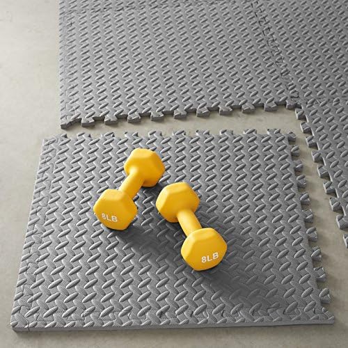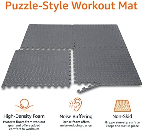 Amazon Basics EVA Foam Interlocking Exercise Gym Floor Mat Tiles – Pack of 6, 24 x 24 x .5 Inches, Grey