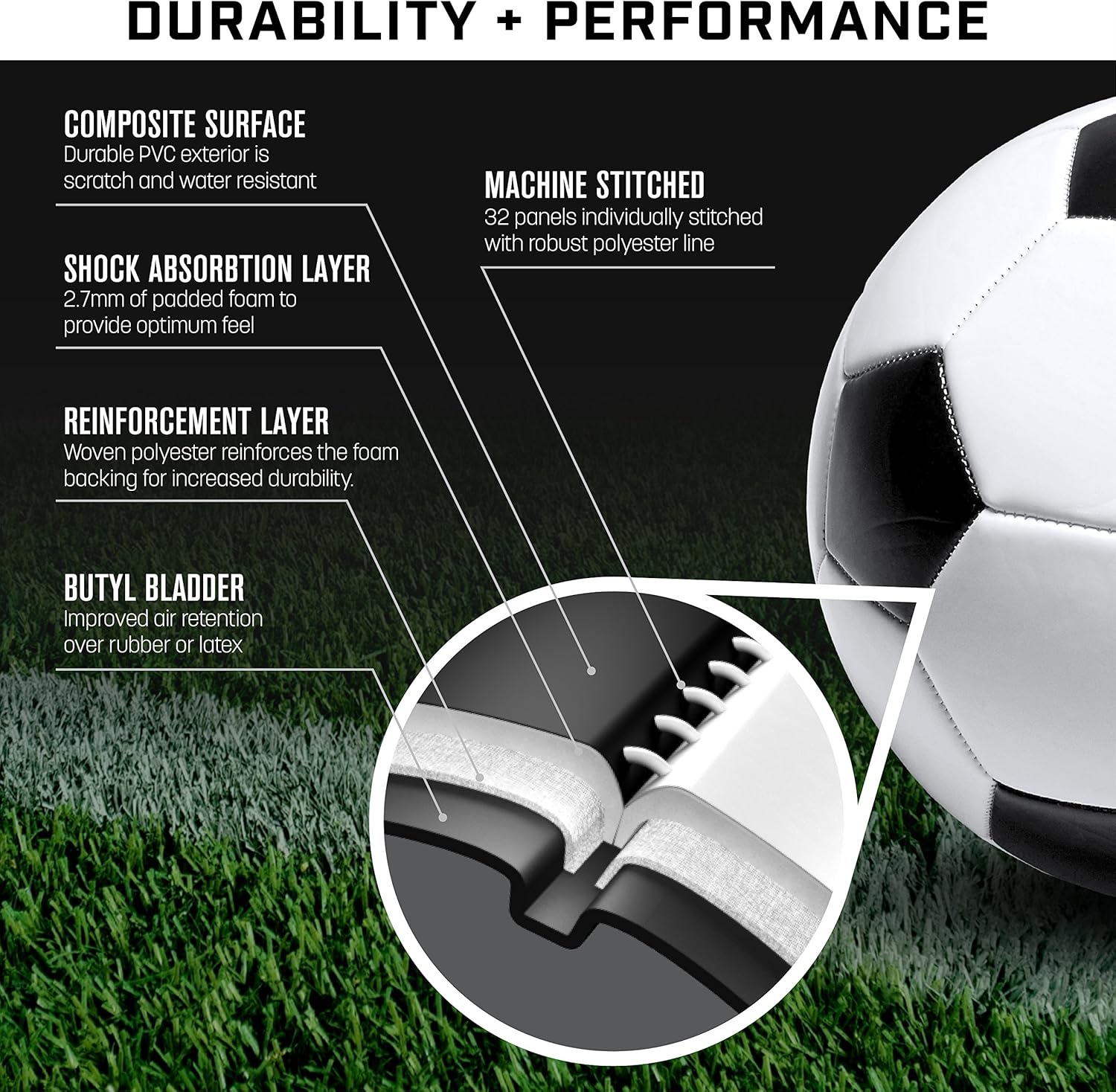 AIR RETENTION: Butyl bladder to maintain roundness and air pressure