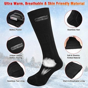 Innovative Embedded Heating: Experience unparalleled warmth and comfort all day long with our electric heated socks. Integrates a heating wire into the fabric, providing you with a cozy sensation that you’ll hardly notice. Ideal for a wide range of outdoor activities such as skiing, motorcycle riding, fishing, jogging, hunting, cycling, hiking, and winter camping, these socks also promote blood circulation. Plus, they remain shock-free even when wet!
