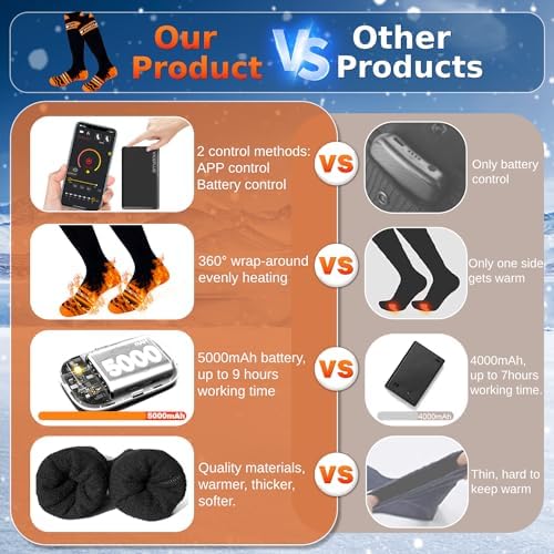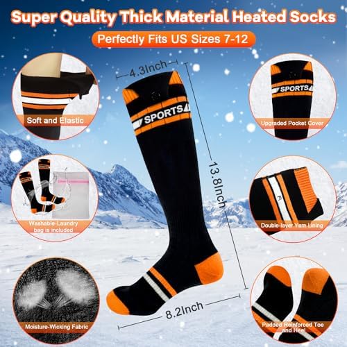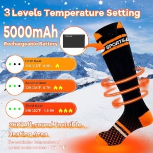 Heated Socks, Heated Socks for Women Men, 5000mAh Rechargeable Electric Heated