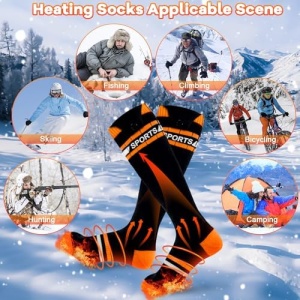 🔥【Best Gift Choice】The heated ski socks for women washable is suitable for a variety of winter outdoor activities such as skiing, hiking, fishing, hunting, biking and more. Not only can help you keep the feet warm, but also promote blood circulation and reduce soreness. Best gift choice for your family and friends, giving warmth to the people you love.