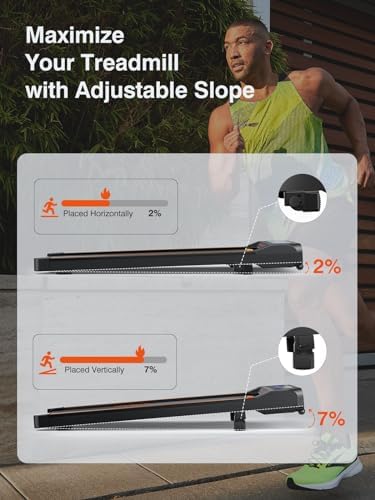 🏃♂️ 【CONSIDERATE SMALL DESIGN】In order to make this treadmill’s maintenance more convenient, unique lubrication hole design allows you to know the lubrication position at a glance; Adjustable slope makes your exercise more efficient and brings you nearly-real climb feelings; With considerate pause and resume function, you can keep exercise data at any moment when you press the pause button of remote.