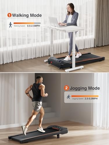 🏃♀️ 【EASY TO MOVE AND STORE】Compact, portable and solid design, no assembly required, ready to use out of the box. This compact lightweight treadmill with transportation wheels make it easy to move and store on the corner or under the sofa or bed, so very suitable for small-space apartments and office.