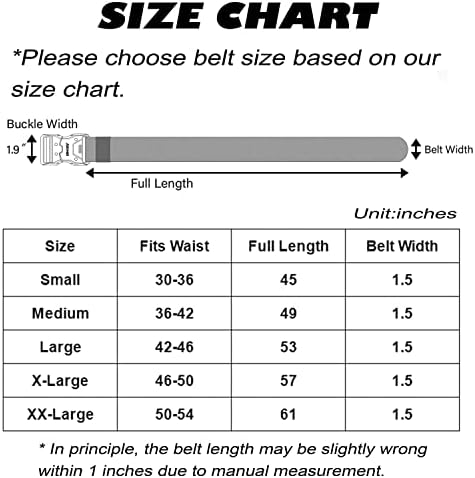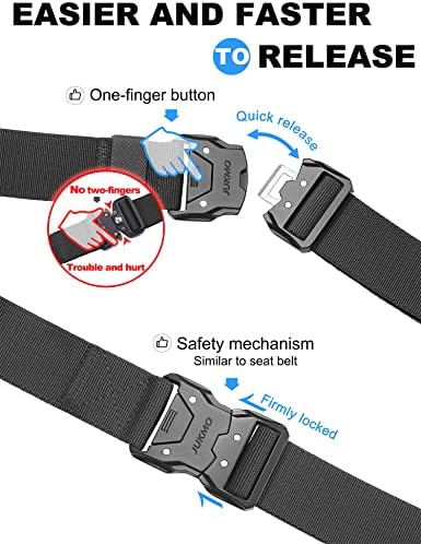 ONE BUTTON QUICK RELEASE BUCKLE:The crafted heavy-duty buckle is made of zinc alloy. As long as you push the button on the buckle, the buckle would release instantly. It is super convenient to release your pants for doing whatever you want to do. You would never meet a belt so quick convenient like this. The designed buckle has very strong load-bearing capacity, which can meet your different wearing requirements