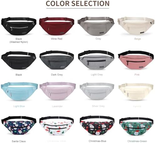 ▶ Best Gifts for Women Men,Enjoy Various Activities and Festival Hands-Free — The Fanny Packs size is about 12.2″x 4.5″ x 3.2″ with 3(Three) zippered pockets perfect for most people who want to be hands free to carry the most needed items,include phone(up to 6.3″), passport, keys, ID and other small items.Perfect ThanksGiving and Christmas Gifts For Men Women Children and Family.