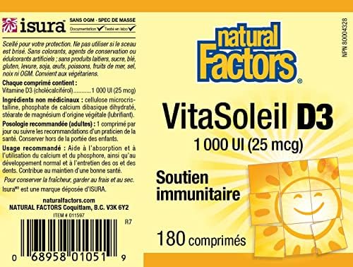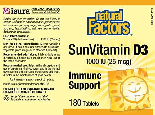Natural Factors – Vitamin D3 1000 IU, Supports Healthy Bones, 180 Tablets