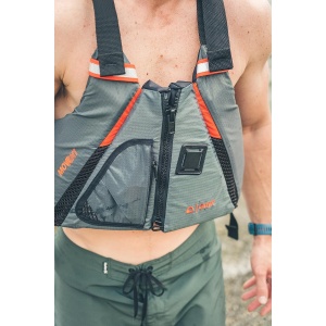 The Onyx Kayak Fishing vest is feature-rich but yet a great value! Designed with four different pocket designs and functions to hold your essential gear and keep you fishing longer. In addition to the zippered fleece-lined pockets and the zippered chest pocket, radios or pliers can slip down and clamp to the pocket/vest through the opening at the top of the pocket, to keep them easily accessible. The one-button push drop down tray pocket holds a small tackle box. The six adjustment straps can be adjusted up or down depending on your activity or the heights of the boat seat or kayak. The high back of the vest does not get in the way of the seats and has mesh for breathability. Universal size fits 30″-52″ chest. Oversize fits 45″-65″ chest. U.S. Coast Guard Approved.