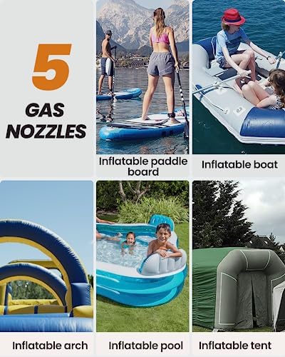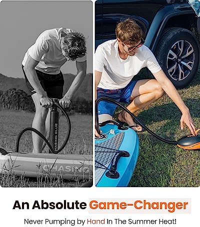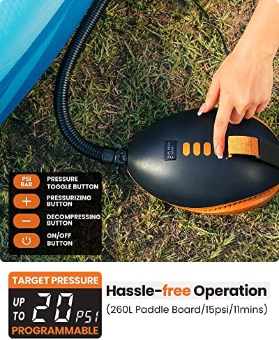 SMART SUP PUMP WITH AUTO-OFF FUNCTION – The auto-off function turns the pump off when target pressure is reached during inflating, and thus prevents damages to your SUPs, inflatables or other pool toys.