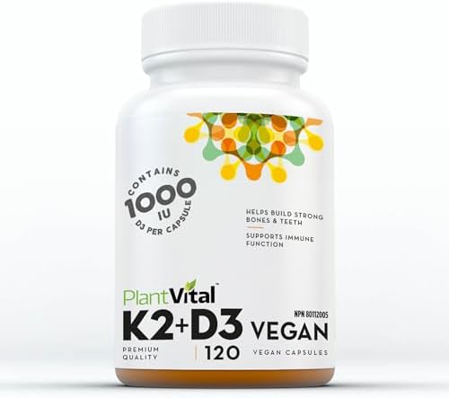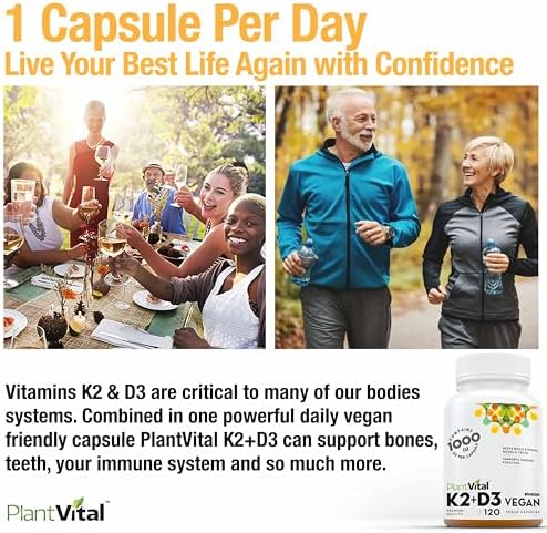 HELPS IN THE ABSORPTION OF CALCIUM WITH Plantvital vitamin D with K2 COMBO: Our high-potency natural D3 supplement helps the body absorb calcium, while K2 ensures it ends up in your bones.