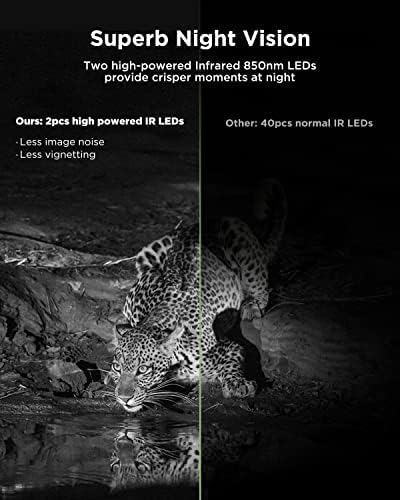 【40MP PHOTOS & 4K/30fps ULTRA HD VIDEOS】40MP pictures, 4K 30fps filming, all subjects filmed are crystal clear and distinct. Also, with the premium optical lens and an advanced image sensor, and 2 cutting-edge large 850nm low glow LEDs, this trail camera captures amazing nighttime wildlife moments with clearer and vivid details. (Note: Video format is MP4; Photo format is JPG.)