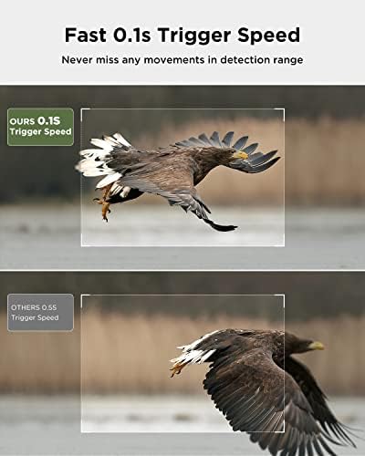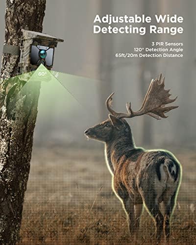 【0.1s TRIGGER TIME & ADJUSTABLE SHOOTING RANGE】Built with 3 sensitive PIR sensors, this trail camera can record wildlife in just 0.1s when motion is detected. The 2 PIR side sensors can be turned on or off in the menu, so the trail camera can be adjusted if you prefer a PIR sensor range of 60°. Easily customize sensor options depending on your style and habit.