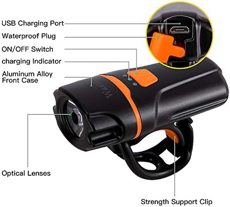 Supper bright bike led lights + IPX6 Waterproof -We can ensure the bike front light really bright (please see what our customer said ); IPX6 water resistant is designed to use in heavy rain. It is durable plastic body and shock-resistant. No worry to ride on the rough road any more!