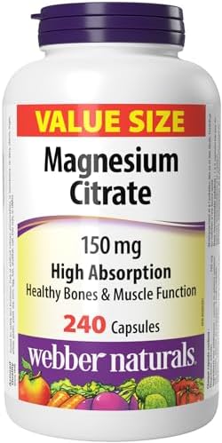 Webber Naturals Magnesium Citrate 150 mg, 240 Capsules, High Absorption Mineral