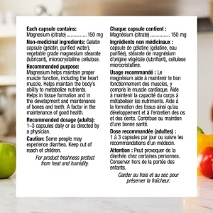 Magnesium is a mineral involved in many essential bodily activities. It regulates metabolic processes, including the production of energy from glucose, and the metabolism of carbohydrates, proteins, and fats. Magnesium benefits the cardiovascular system by toning the vascular system, and it is necessary for the proper functioning of muscles, including the heart.As an important mineral, magnesium helps promote the absorption of other minerals such as calcium, phosphorus, sodium, and potassium. It also plays a key role in the development and maintenance of healthy bones and teeth.Magnesium Citrate High Absorption from Webber Naturals is an important factor in the maintenance of good health. It supplies magnesium in the citrate form, making this supplement ideal for people who have low stomach acid or difficulty with absorption.