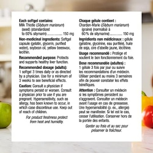 Milk thistle contains active compounds called silymarin that protect and rejuvenate the liver in cases of cirrhosis, hepatitis, and damage caused by alcohol or toxic chemicals in the environment. Milk Thistle from webber naturals® is concentrated and standardized to contain 60% silymarin, ensuring consistent potency and effectiveness in every bottle.