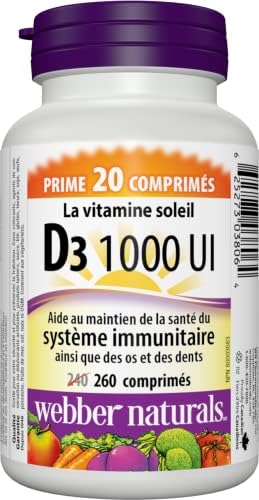 Webber Naturals Vitamin D3 1000 IU, 260 Tablets, For Healthy Bones, Teeth