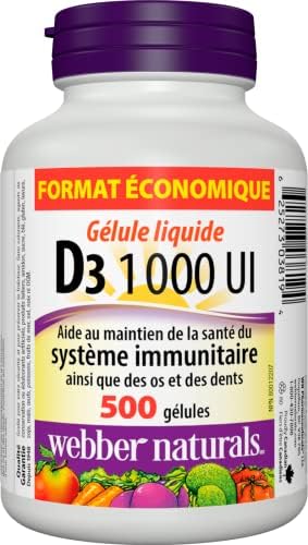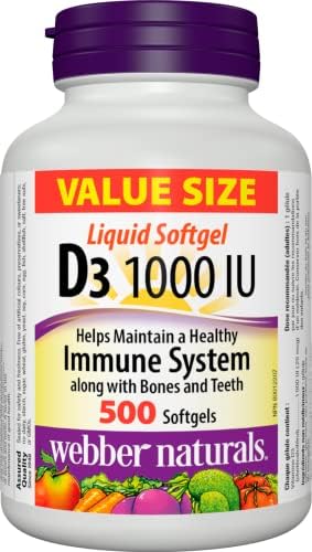 Webber Naturals Vitamin D3 1000 IU, 500 Softgels, For Healthy Bones, Teeth