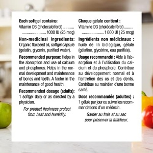 Vitamin D, also known as the “sunshine vitamin,” is a critical nutrient for immune function and the development and maintenance of healthy bones and teeth. D3 1000 IU from Webber Naturals contains the preferred cholecalciferol form of vitamin D. It helps the body absorb calcium and phosphorus, and is a factor in the maintenance of good health.