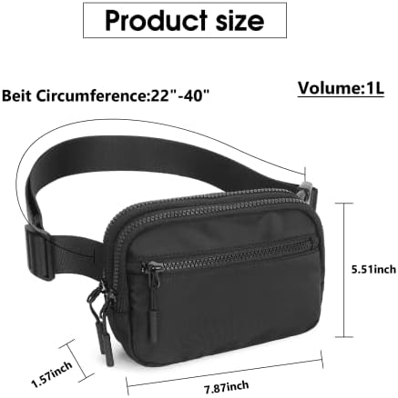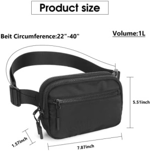 [SIZE] Fanny Pack: 7.8″ x 5.5″ x 1.5″, Strap Length: 22″- 40″